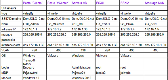 Nous avons également ajouter à cette environnement un contrôleur de domaine et un serveur de stockage (SAN).
